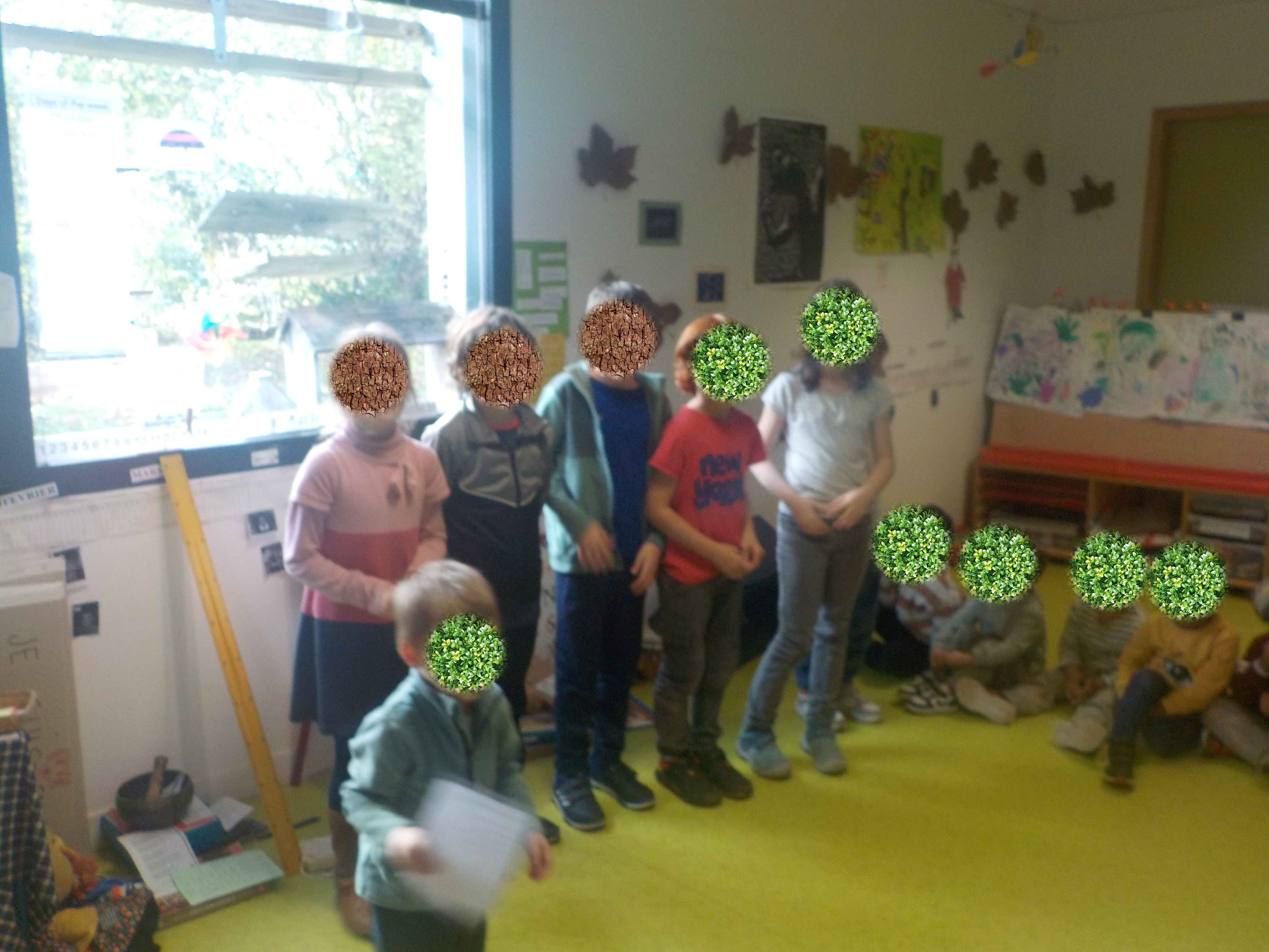 Les élèves de Ce1-Ce2 ont déclamé des poésies pour NOUS! « Alors, nous avons chanté nos comptines d’automne pour les remercier. »