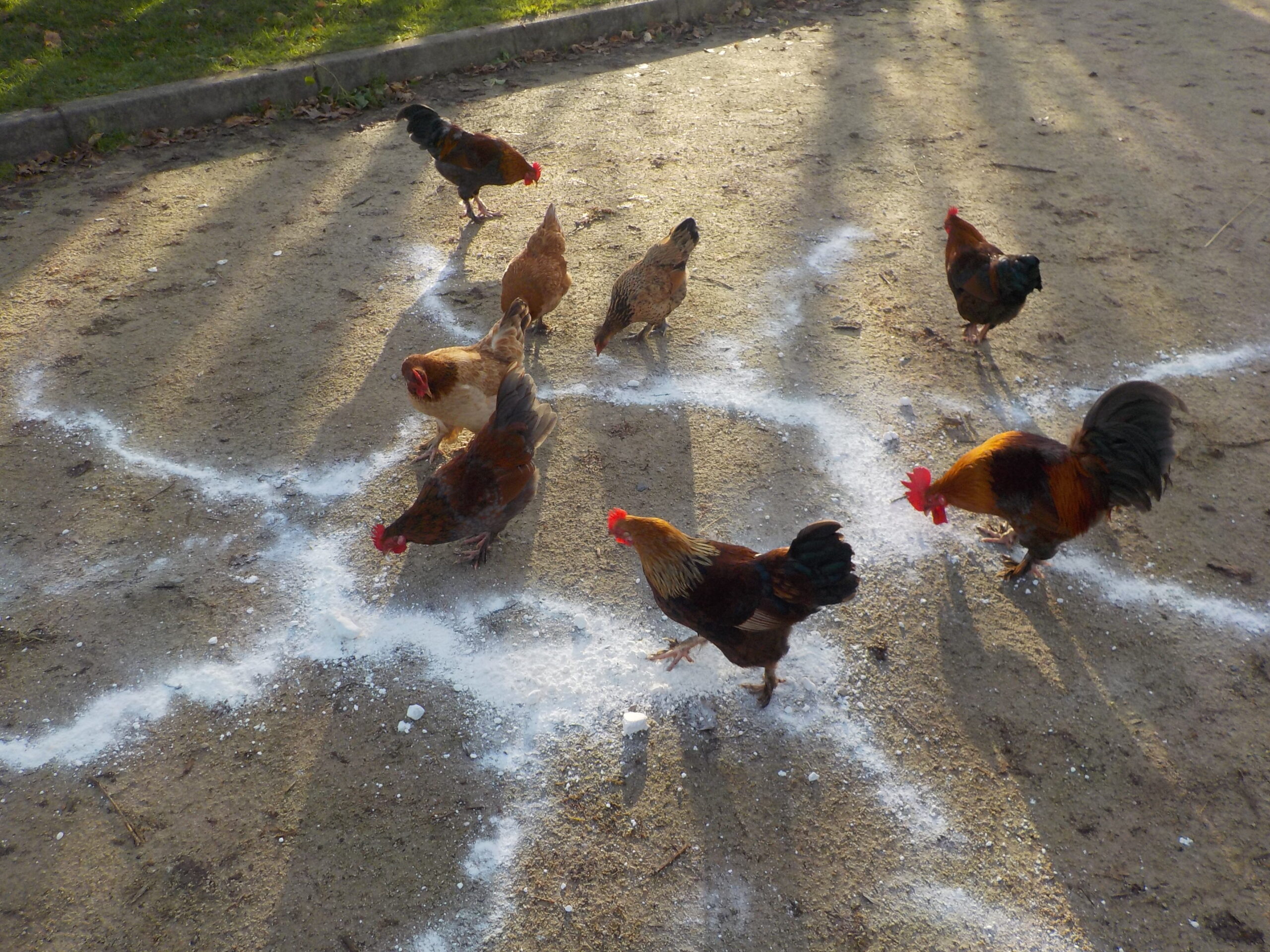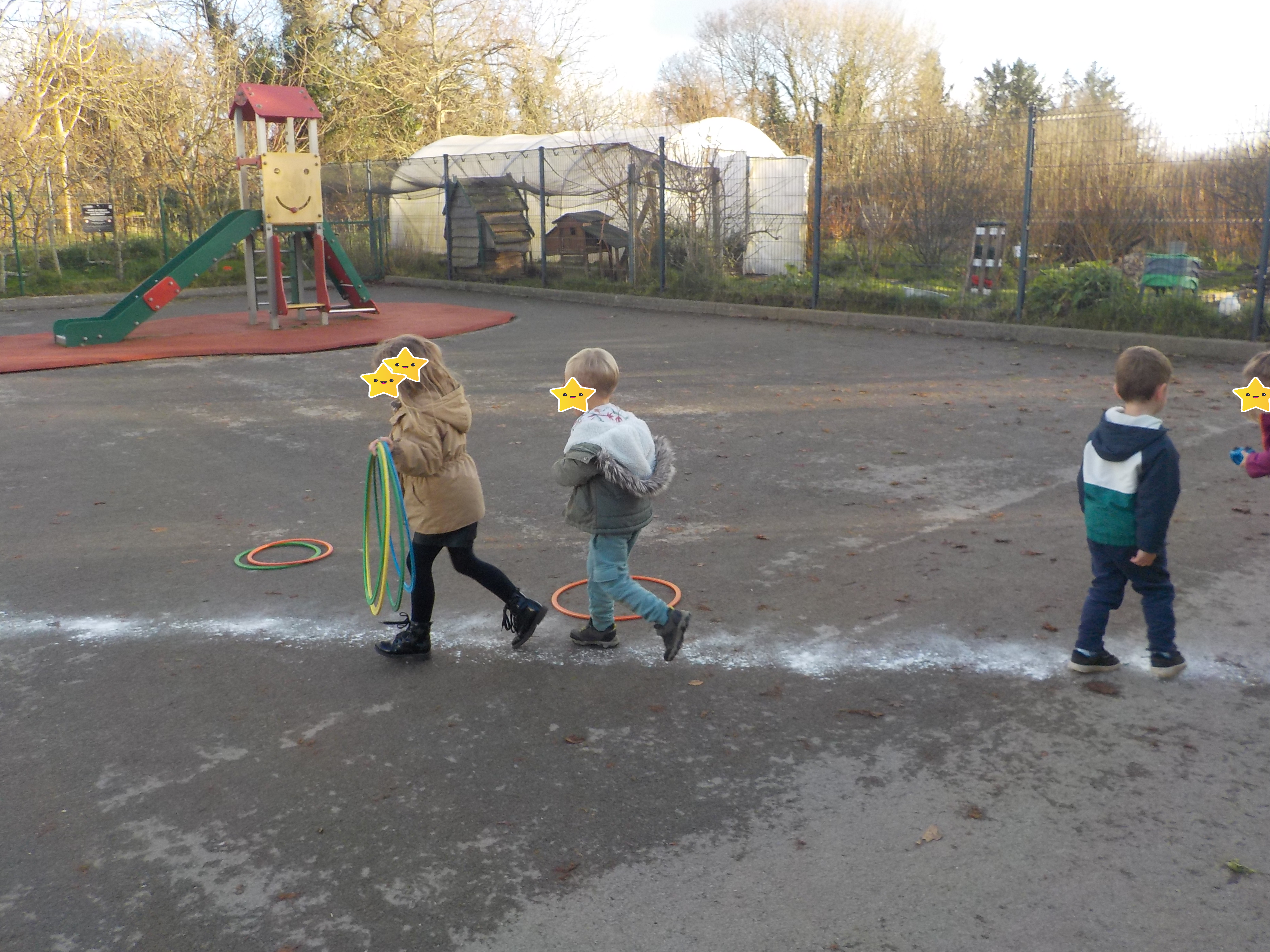 Des enfants et des poules qui apprécient le land-art…