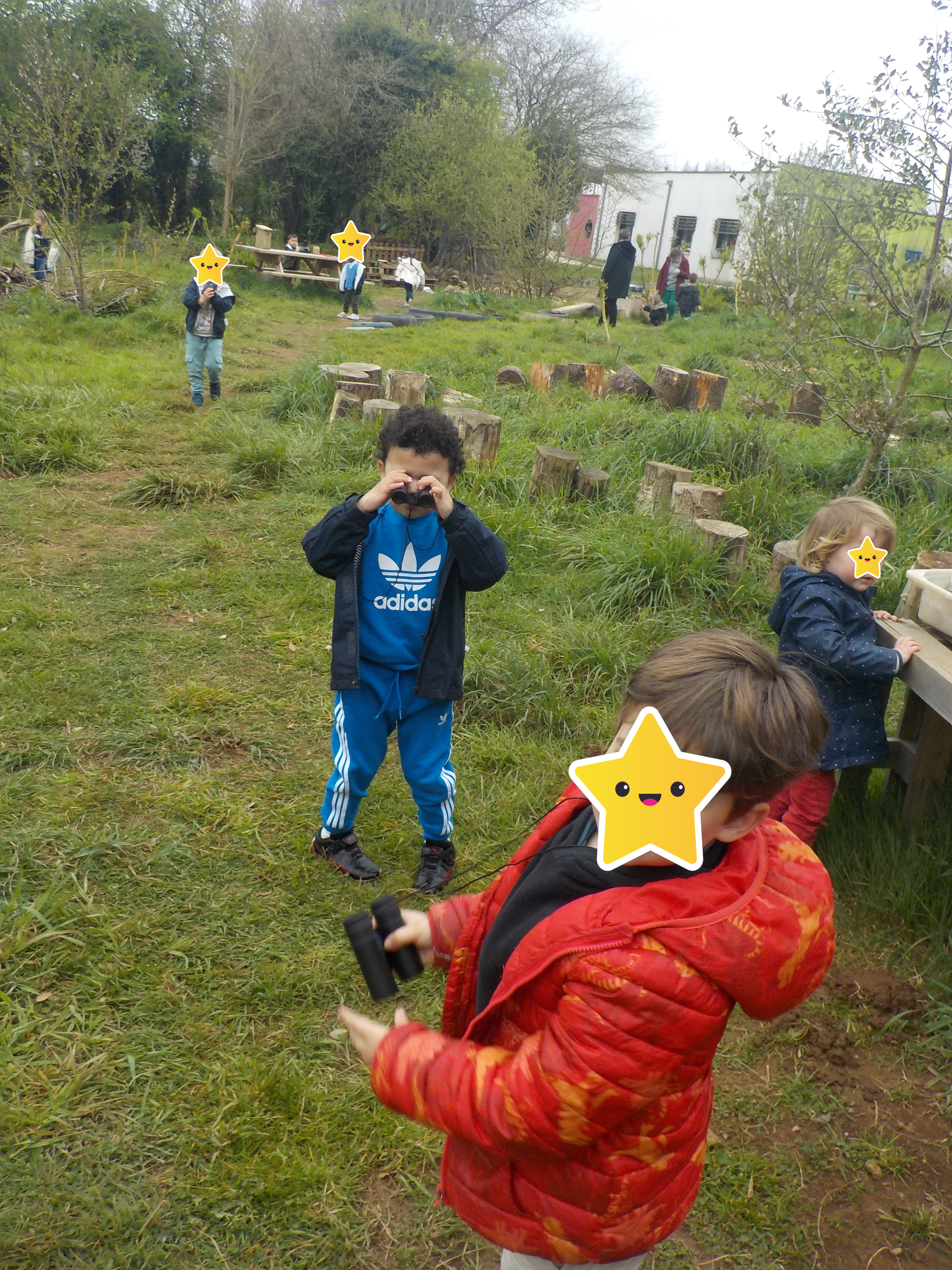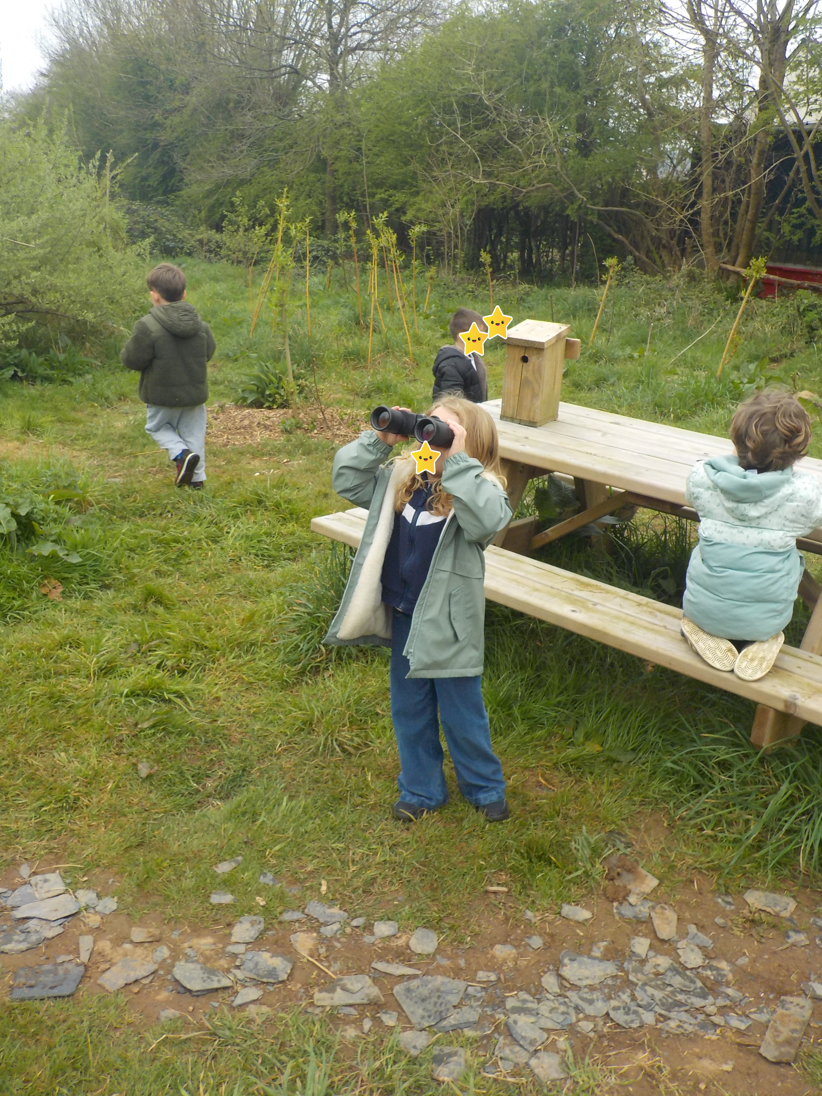 « Nous avons planté des graines, nous avons observé des pinsons et des choucas, nous avons regardé à la loupe des insectes et des lombrics. » « Nous avons marché sur le parcours et couru sur l’ATE. » « Nous avons un peu joué à la dînette. »